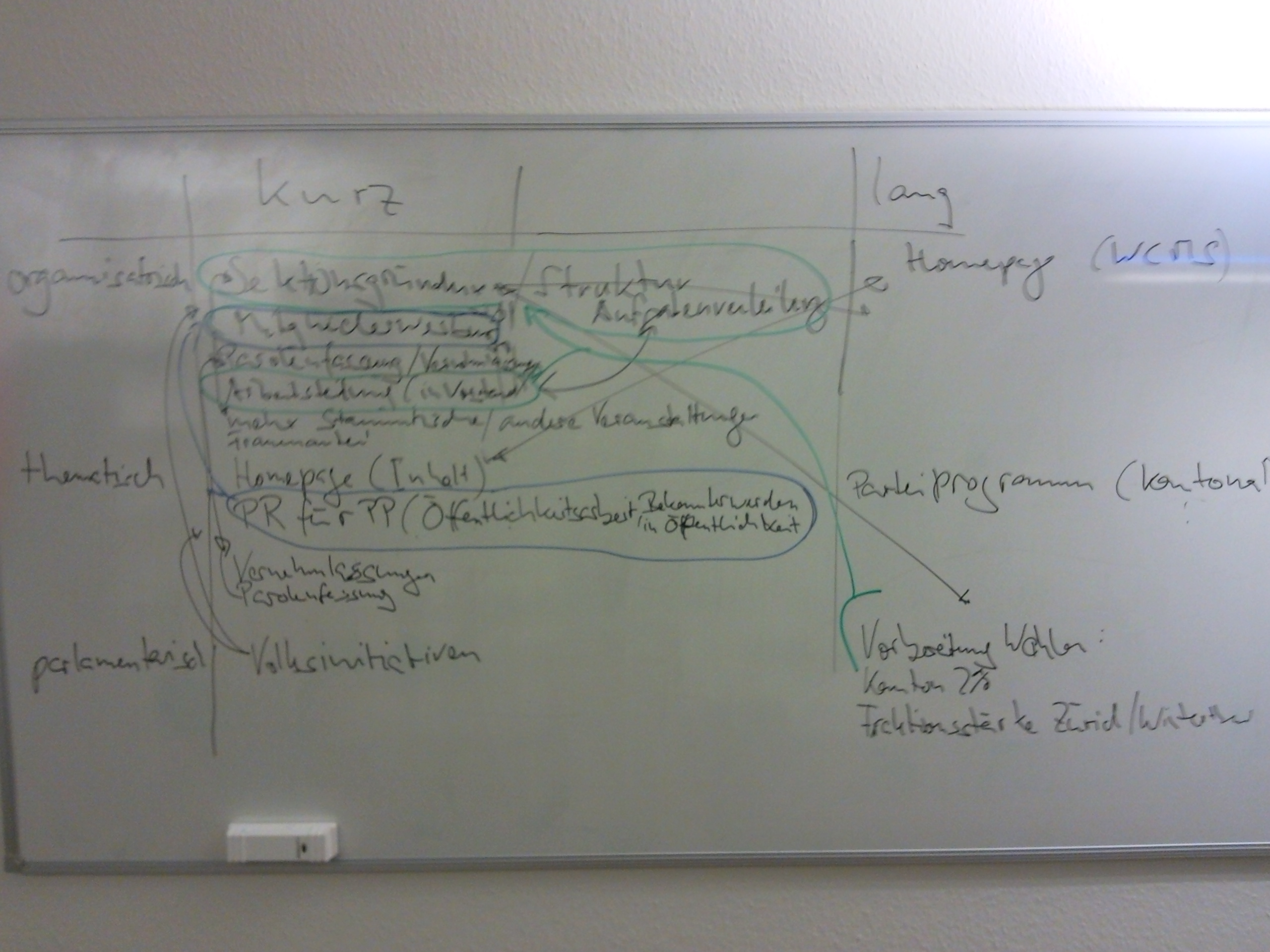 Wir strukturieren in zwei Dimensionen: kurz-/langfristig und organisatorisch/thematisch/parlamentarisch.