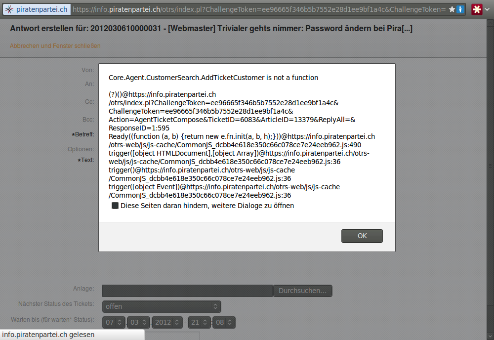 closedFehler beim beantworten von OTRS-Tickets