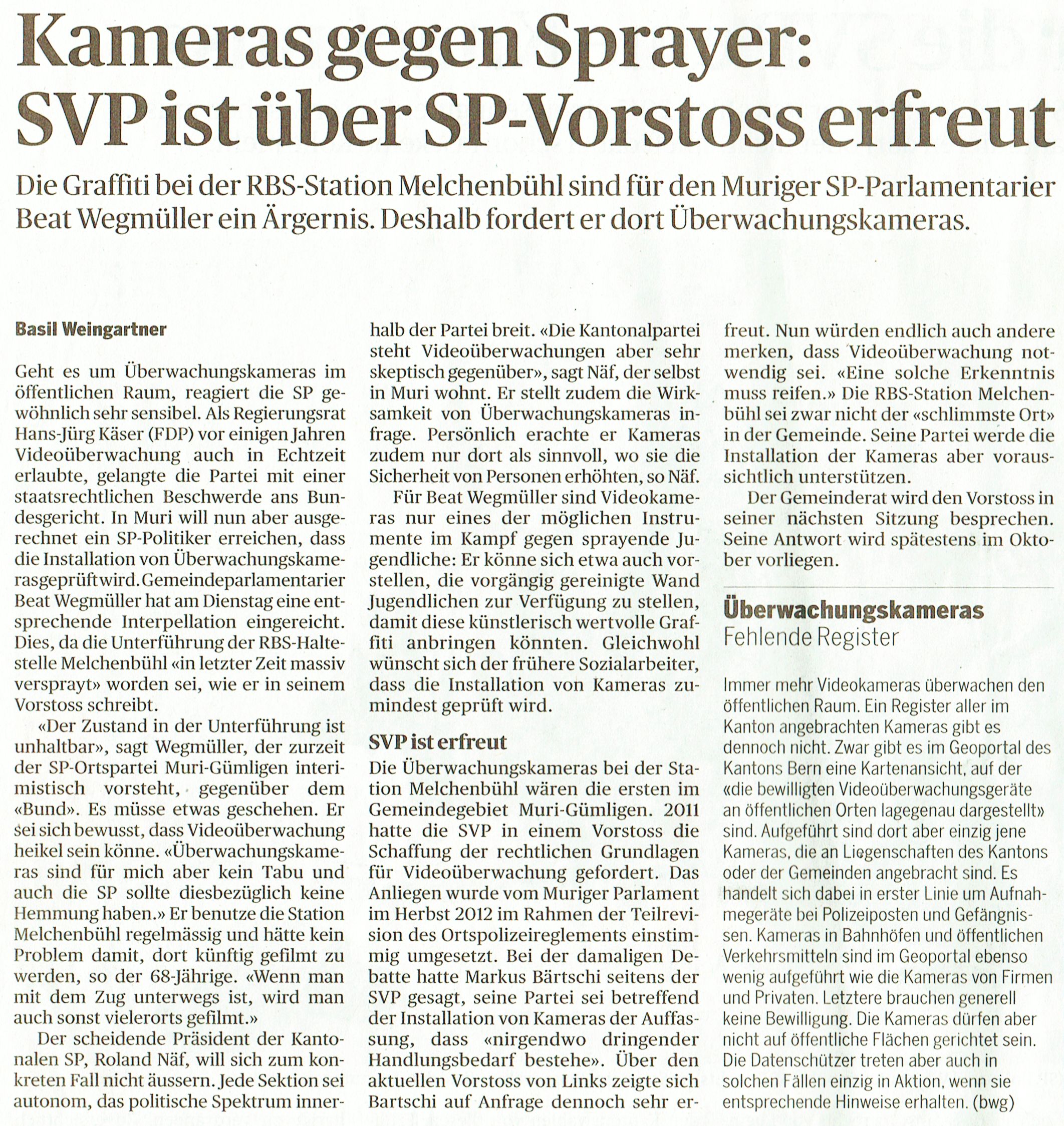 Gemäss angehängtem Artikel wurde wieder eine Videoüberwachung im öffentlichen Raum angestossen.